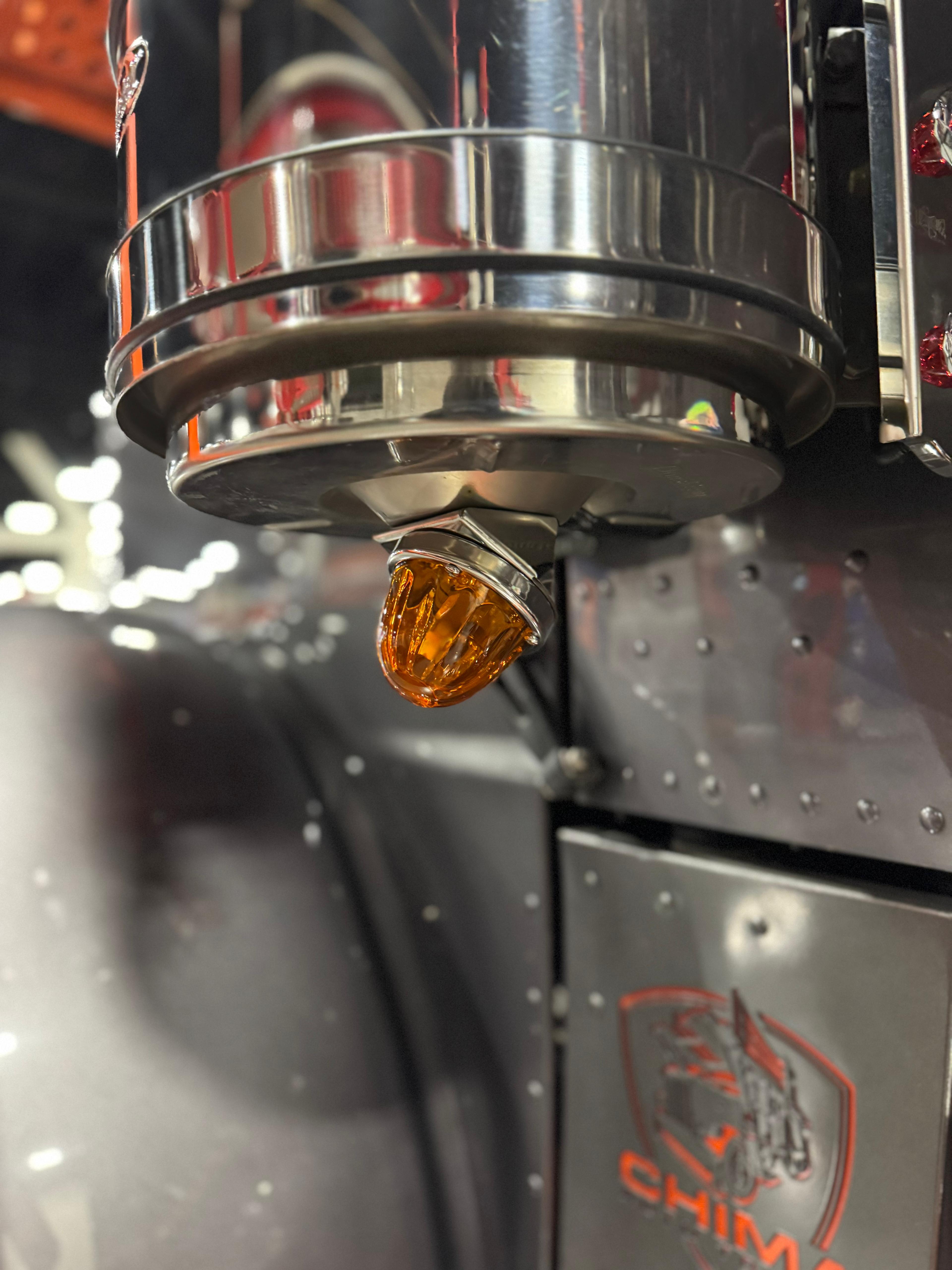 Polished stainless steel rear air breather bracket designed to mount three (3) mini watermelon lights in a vertical layout. Precision-formed for clean fitment along the rear breather assembly, delivering a sharp, balanced lighting accent for show builds
