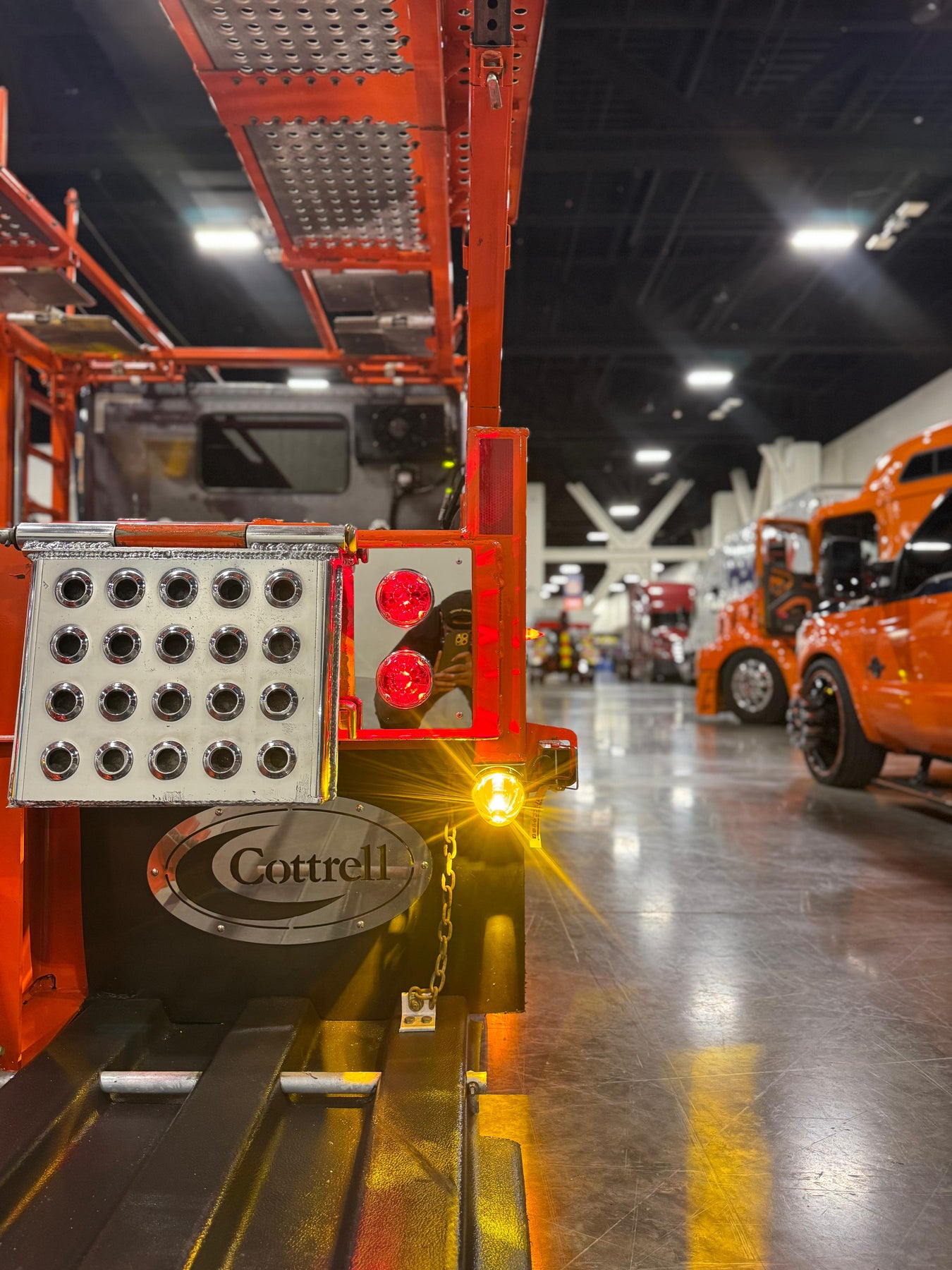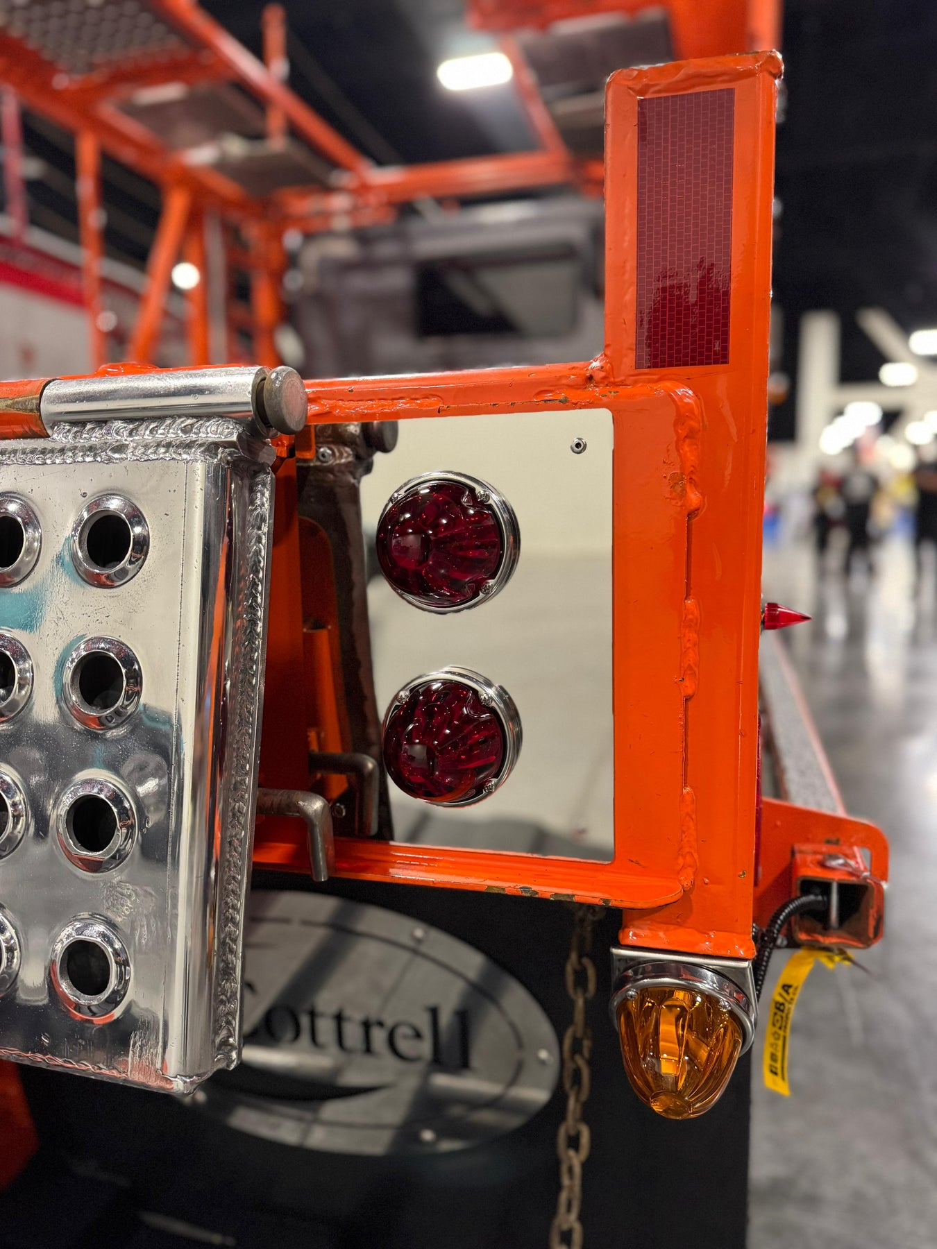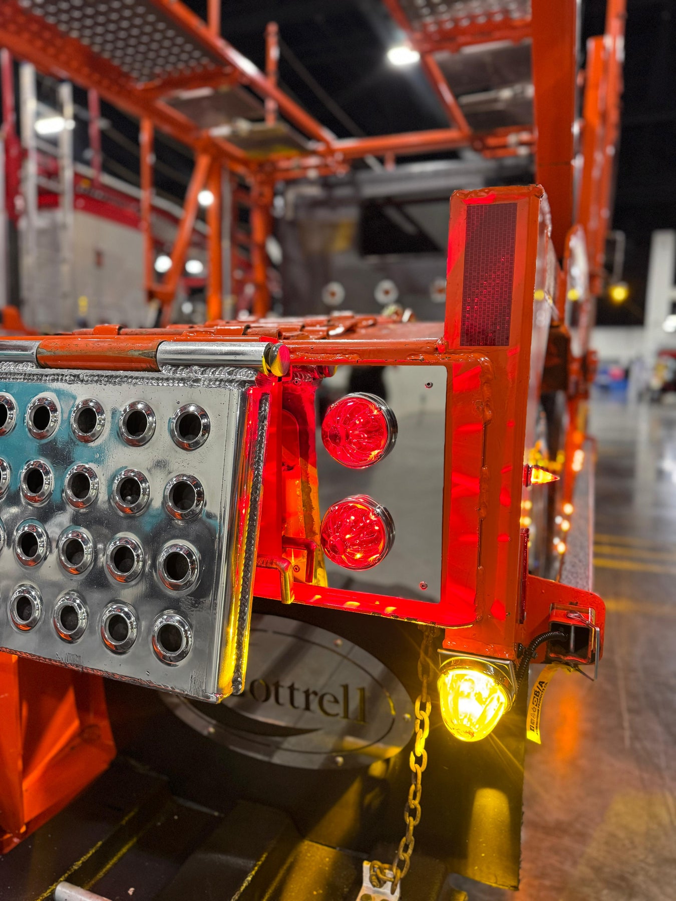 Custom stainless steel tail light plate designed to mount watermelon lights cleanly on the rear of your car hauler.